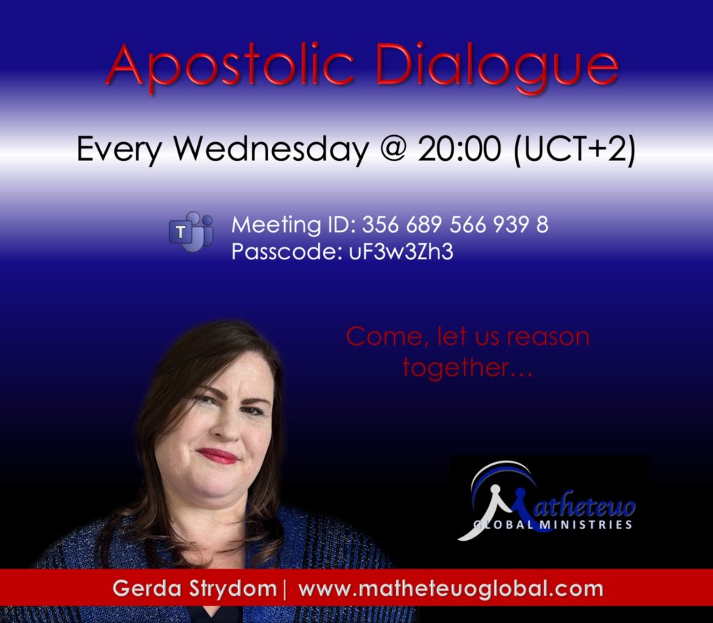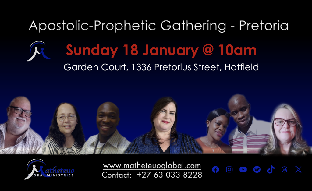 Gerda Strydom is the presiding elder of this ministry and provide apostolic oversight to the Matheteuo Global family.